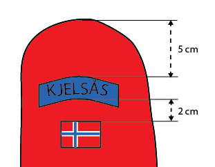 Flagg sys på 2 cm nedenfor KSM-merket.